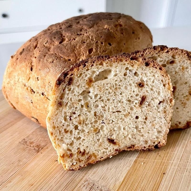 Our classic oat bread enriched with roasted onion, giving it a unique and intense flavor. Every bite is filled with aroma and flavors, making this bread stand out from the rest. It is easy to digest and 100% gluten-free. The onion we use is certified. The bread has a crispy crust and a soft, elastic interior, and a delightful aroma. It doesn't crumble when sliced. It does not contain colorants, flavorings, or bread improvers. The addition of seeds gives it nutritional value and a wonderful taste.