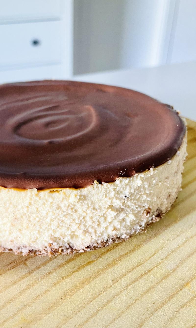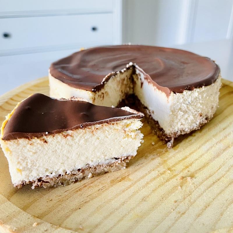 Lekki i pyszny sernik w wersji KETO! Doskonale słodki bez grama cukru z polewą czekoladową i na spodzie orzechowo migdałowym.
